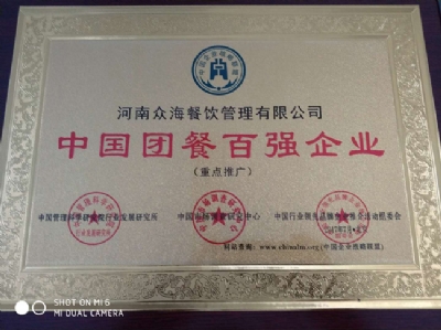 • 18-02-10熱烈祝賀河南眾海餐飲管理有限公司榮獲中國飯店協會團餐委員會委